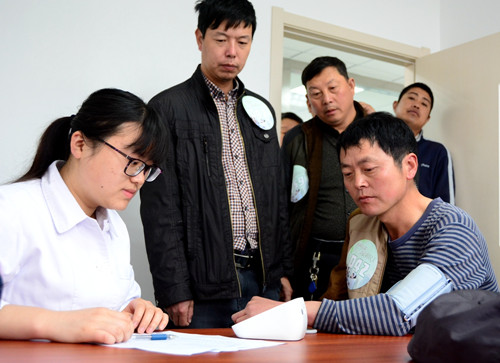 春风送暖,免费做体检为施工一线的100名农民工免费送健康,体检包括肝、肾功能检查,胸透、血糖、血脂、尿酸等项目及健康咨询,筛查农民工职业病患病情况,针对性地对工人易患疾病进行预防。